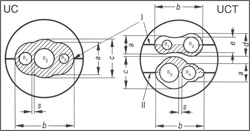 Các nắp đầu vào cáp có cấu trúc 3 mảnh với vùng khoan lỗ (UCT) được thiết kế cho loại măng sông UC 8 và 10. Nắp đầu vào cáp UCT có vùng khoan lỗ cho đầu vào cáp lớn hơn nhiều, xem chi tiết phần “vùng cáp vào của nắp đầu vào cáp”
